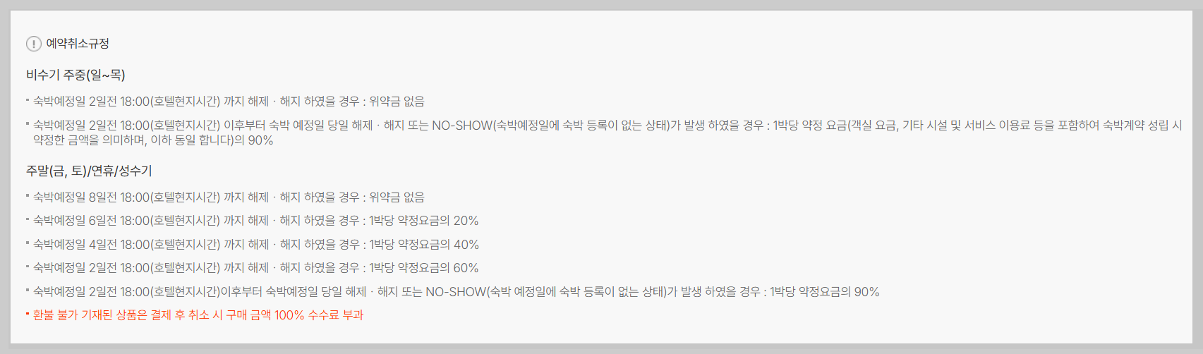 | 2일 전 18:00까지 | 1박당 요금의 60% |