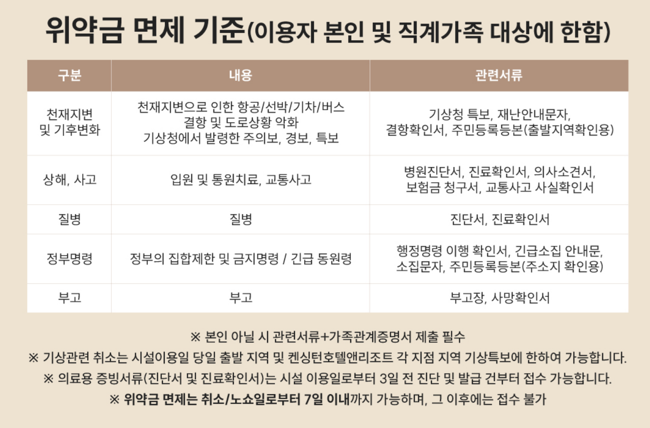 🔐 켄싱턴 취소 수수료 규정 (2025년 여름 기준 적용)
